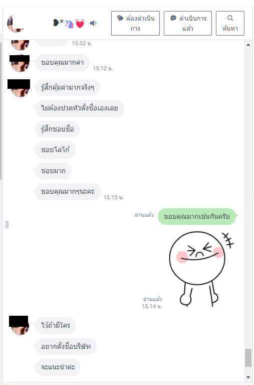 คำขอบคุณจากคุณ Kung ลูกค้าตั้งชื่อบริษัท